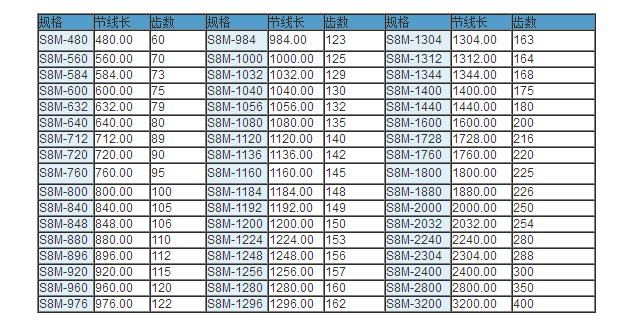 同步帶技術參數