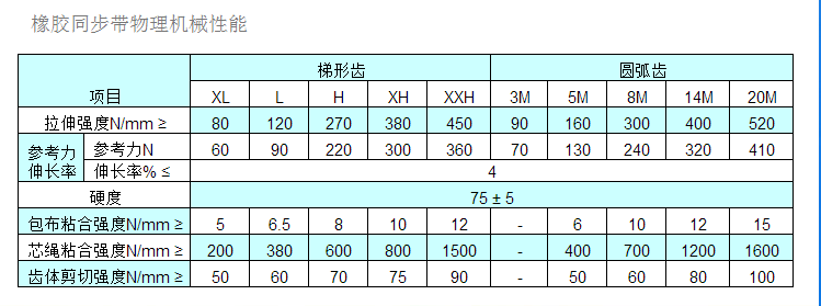 同步帶技術參數